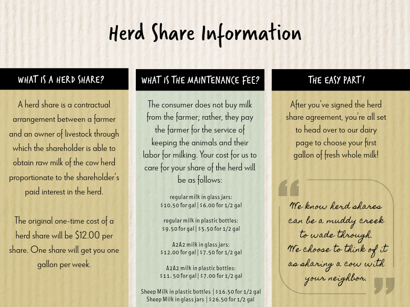 The original one-time cost of a herd share is $12.00 per share. One share will get you one gallon per week.